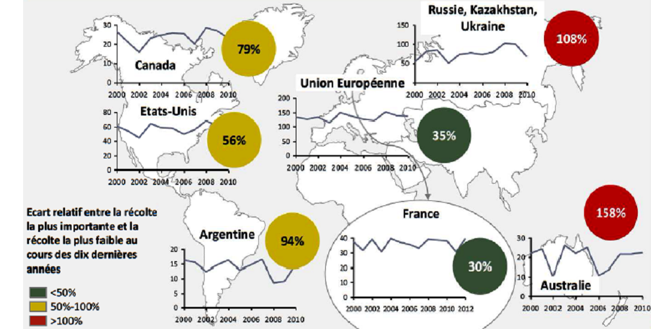 La menace d’une crise alimentaire majeure dans les toutes prochaines décennies ne peut malheureusement être exclue. Dans une telle perspective, l’état de l’agriculture française constitue un atout. Il s’agit, en effet, d’une agriculture pouvant contribuer aux grands équilibres vitaux de la planète, sur bon nombre de produits végétaux et animaux. Sur le plan des productions végétales, la France est un des pays où les variations de production céréalières sont parmi les plus faibles du monde.