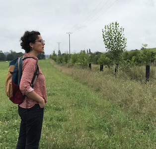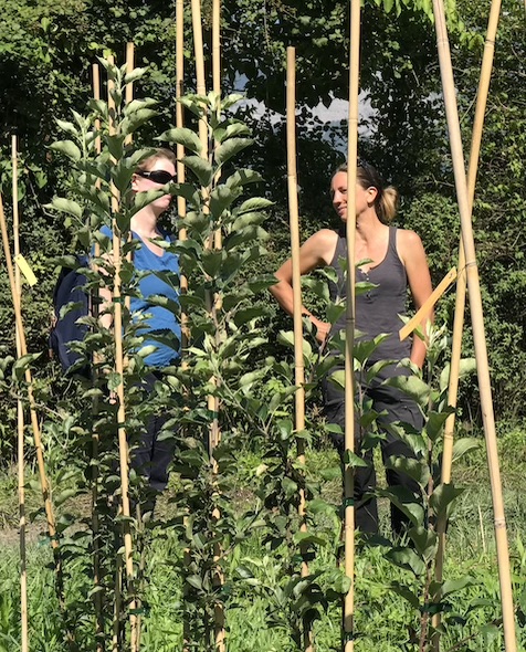 Au surplus, la visite a permis de parcourir une parcelle en expérimentation : un verger syntropique avec une grande densité d’arbres d’espèces complémentaires, notamment des peupliers qui protègent les muriers et jeunes arbres fruitiers. Entre les lignes espacées seulement de 2,5 m, des engrais verts et les résidus des tailles sont laissés sur place à la fois pour garder l’humidité, protéger et enrichir les sols. Aujourd’hui, Aurélie contribue à un ouvrage collectif avec Actes Sud pour favoriser la fabrique de Bio-Territoires... L’agro-écologie est au cœur de son propos.