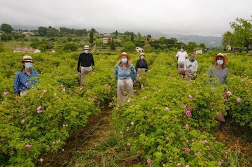 Cueilleurs de la rose centifolia en 2020 - AFP - Dans les Alpes Maritimes les contrastes sont marqués entre une côte densément peuplée et urbanisée et des montagnes parmi les moins habitées de France. Ce département accueille des activités de service et touristiques fortement rémunératrices et de grands espaces naturels tel que le Parc national du Mercantour. Les contrastes ne sont pas moindres dans les formes que peuvent prendre les initiatives assimilables à de l’agriculture urbaine.