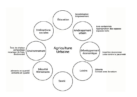 L’agriculture urbaine et périurbaine (AUP) fournit des aliments frais, génère des emplois, recycle les déchets urbains, crée des ceintures vertes, et renforce la résilience des villes face au changement climatique. Les pratiques de l’AUP incluent la culture hydroponique et les arbres hors forêts (en anglais TOF).