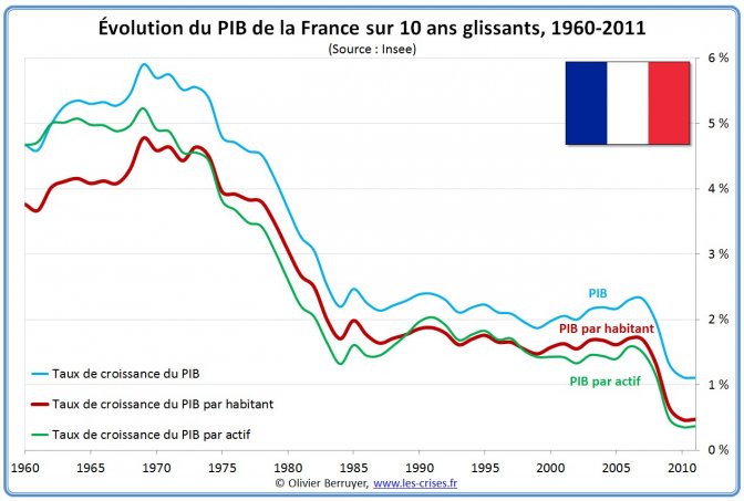 Renouer avec une plus forte croissance économique mesurée par celle du produit intérieur brut, le fameux PIB, est devenu une idée fixe dans les média et chez les responsables politiques. C’est particulièrement vrai depuis la « Grande récession » américaine vite transmise à l’Europe et au reste du monde notamment depuis 2009. Mais, c’est plus ancien. Rappelons-nous : « La croissance, j’irai la chercher avec les dents » avait lancé Nicolas Sarkozy pendant la campagne électorale au début de 2007. En 2012, la croissance économique était toujours un focus dans le débat de campagne. Le candidat socialiste avait donné ses prévisions de croissance en France : 0,5% pour 2012 et 1,7% pour 2013. Il laissait espérer "de 2% à 2,5% en fin de mandat". On voit ce qu’il en est et comment ce hiatus entre ces paroles entendues comme des promesses et les évolutions des revenus et du chômage pèsent sur la popularité de l’équipe en place.