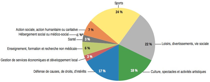 - 23 millions de participations bénévoles concernent une part appréciable de la population [6]. Une bonne part est effectuée au sein d’associations, en particulier dans le sport, les loisirs et la culture. Le bénévolat concerne toutefois tous les domaines et toutes les formes associatives.