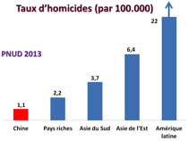 La plupart des pays du Sud sont infestés par un taux élevé de violence. Sur ce plan, la Chine présente des statistiques excellentes. Les pays riches comptent deux fois plus d’homicides par habitant que la Chine. En Asie, on en est à quatre ou six fois plus et, en Amérique latine, vingt fois plus, même. L’image est similaire pour le nombre de journalistes assassinés. Avec ces chiffres il vaut mieux rester modeste en Europe.