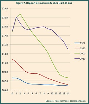 Comme pour l’Inde, ce surcroît d’hommes résulte de deux facteurs : la pratique croissante d’avortements sélectifs au détriment des filles et une surmortalité féminine anormale due à des négligences de traitement dans la petite enfance. La préférence de la société chinoise pour les fils est le produit d’un système patriarcal et du confucianisme, qui maintient les femmes en position secondaire dans la famille et la société. Les fils ont l’avantage de perpétuer la lignée familiale et le devoir de prendre en charge les parents dans leur vieillesse. De plus, les couples devant limiter strictement le nombre de leurs enfants, les filles deviennent indésirables du simple fait qu’elles privent les parents de la possibilité d’avoir un fils.