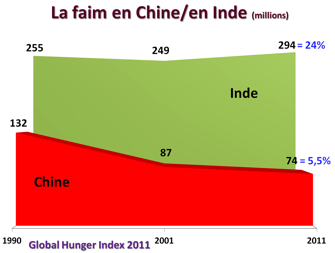 5,5 % de la population sont toujours confrontés à la faim. Bien que trop, c’est bien moins que l’Inde à 24 %.