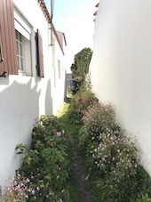 Nous ne ratons pas les ruelles fleuries, et nous pique-niquons en vue du Vieux-Château (L’Île-d’Yeu).