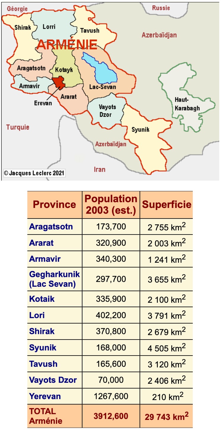 Les provinces de l’Arménie sont des unités administratives de la République d’Arménie et sont au nombre [4]. Elles réunissent 48 communautés urbaines et 865 communautés rurales.