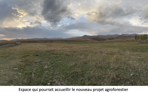 Le terrain est à 1700 m d’altitude sur des sols d’origines volcaniques issus de dépôts de cendres plus ou moins anciennes reposants sur des tufs volcaniques ou des coulées pyroclastiques. La pente y est modérée sur les ¾ de la surface (<15%) et donc facilement mécanisable. La ressource en eau est assurée par des résurgences en amont alimentant de manière naturelle le canyon situé en bordure du site et un réservoir type « bassine » de 80 m3 déjà installée. La végétation actuelle est composée de prairie naturelle et de champs de cultures traditionnelles en ce milieu (pomme de terre, choux, blé essentiellement). Planter des arbres en agroforesterie comportant des cultures intermédiaires et des productions de fruits permettrait aux villageois de retirer des revenus du terrain dédié au projet.