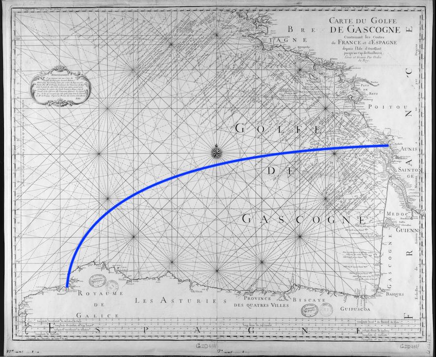 Le voyage commence tout de suite par la plus longue étape, la traversée du Golfe de Gascogne.