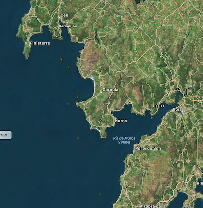Environ 110 Mn séparent Ria de Muros de Porto (180 mn depuis A Coruña), seconde ville du Portugal. De nombreux abris, ports, mouillages sont égrenés entre les deux. Beaucoup mériteraient un arrêt et une visite. Ils apportent une sécurité pour cette navigation.
