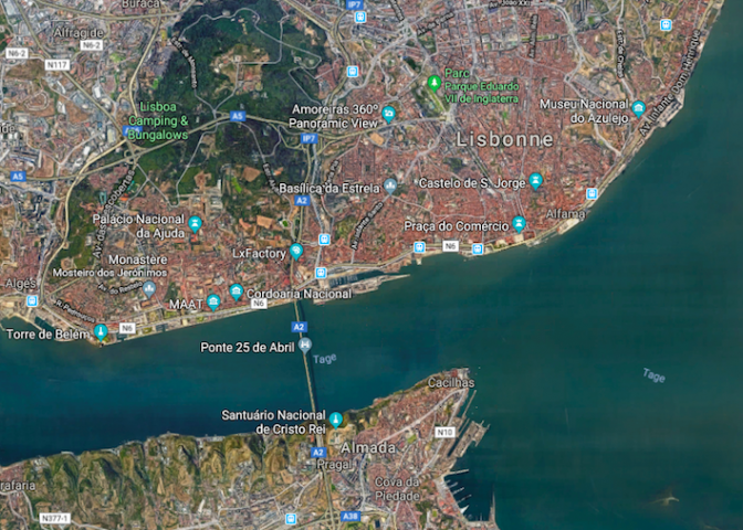 La Tour de Belem accueille, à présent, le navigateur. Doca de Alcântara, des cinq marina de la ville, la plus accueillante pour les visiteurs, s’allonge sur la rive nord juste en amont de Ponte 25 de Abril. Elle est proche du centre historique marqué par ses sept collines (São Jorge, Estrela, Santa Catarina, São Pedro de Alcantra, Graça, Senhora do Monte et Penha de França) dont les pentes de certaines d’entre elles sont telles qu’elles interdisent la circulation automobile.