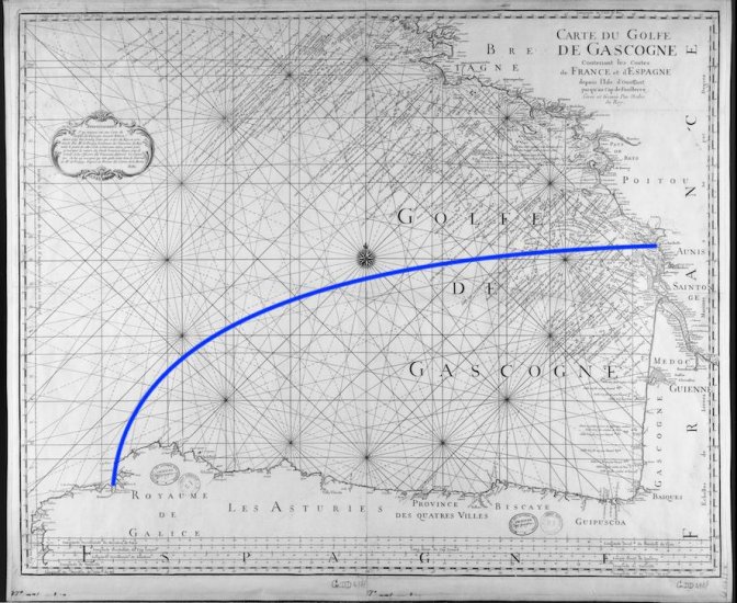 La distance est d’environ 380 Mn que l’on peut espérer parcourir en 65 h environ. A propos du Golfe de Gascogne :