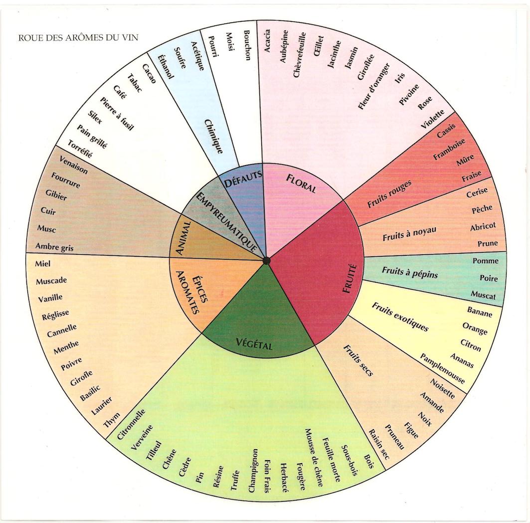 Les arômes les plus fréquents sont expliqués dans la "roue des arômes".