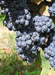 Description : grappes petites à moyennes, cylindro-coniques, plus ou moins compactes. Baies petites à moyennes, ovoïdes, peau épaisse pruinée d’un beau noir bleuté, chair juteuse croquante à saveur simple. Le feuillage rougit complètement à l’automne.
